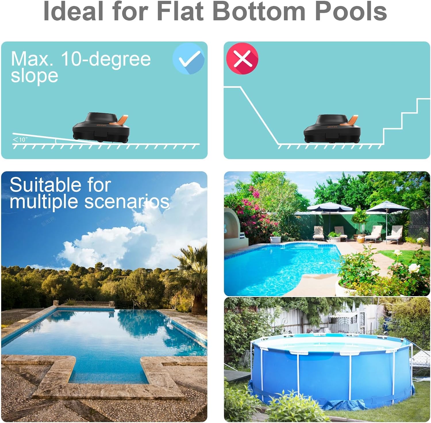 - Vielseitige Poolkompatibilität: Egal, ob Sie einen oberirdischen Pool oder einen unterirdischen Pool ohne Gefälle haben, dieser poolsauger bodensauger ist die perfekte Wahl für Sie. Er eignet sich für die meisten Arten von Schwimmbecken, einschließlich PVC-, Vinyl-, Mosaikbeton- und Glasfaserbecken