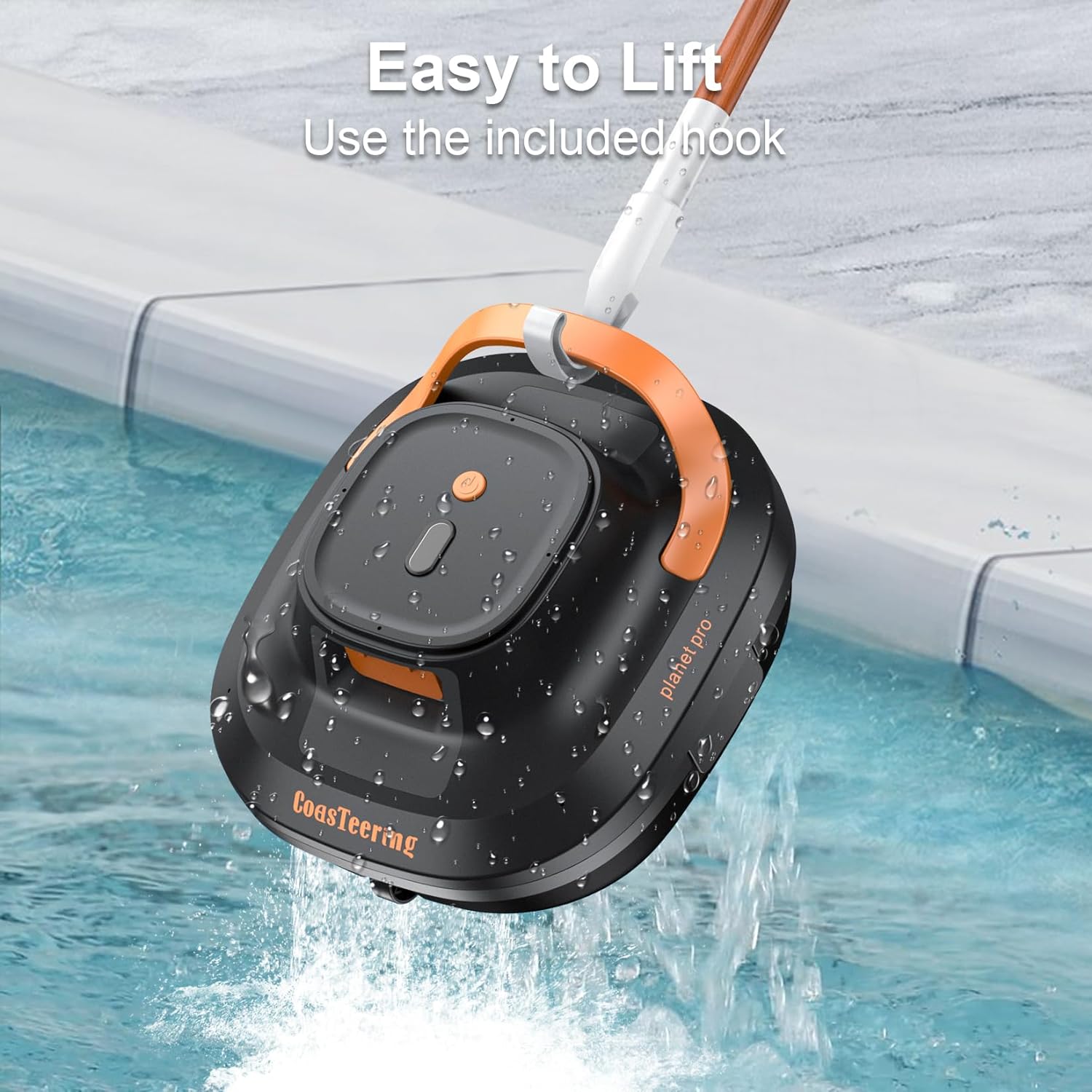 - Intelligente Selbstparker: Der CoasTeering poolsauger bodensauger kehrt automatisch um, wenn er auf eine Wand trifft, und reinigt in die entgegengesetzte Richtung. Er parkt in der Nähe der Poolwand, wenn der Akku leer ist oder am Ende einer Schicht, wiegt nur 3,7 kg und lässt sich mit den mitgelieferten Haken leicht herausziehen