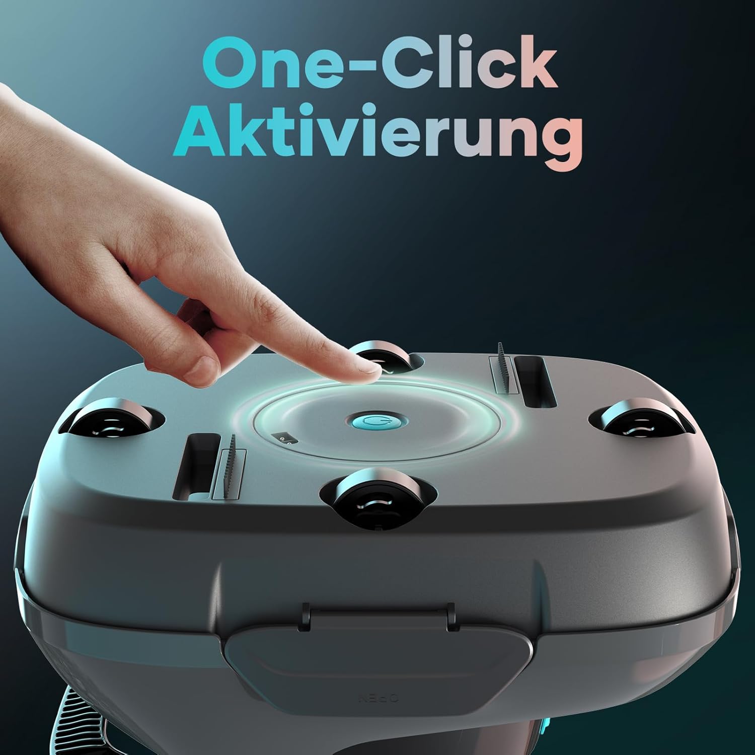 - Kabellose Bequemlichkeit: Aktivieren Sie den kabellosen Poolroboter akku mit nur einem Klick – ganz ohne Hände! Dieser kabellose Poolreiniger beseitigt das lästige Problem von verhedderten Kabeln und bietet eine leichtere, einfach zu lagernde Alternative zu herkömmlichen Modellen mit Kabel.