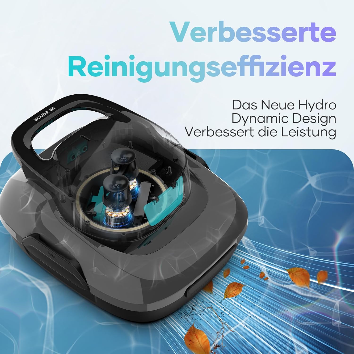- Reinigungsleistung: Die Doppelantriebsmotoren erzeugen bis zu 83 LPM Saug- und Filterleistung. Der poolreiniger ist mit einem Zwei-Liter-Filterkasten ausgestattet, in der alle von Ihrem Poolreiniger gesammelten Rückstände aufbewahrt werden können, selbst bei den schwierigsten Reinigungsarbeiten.
