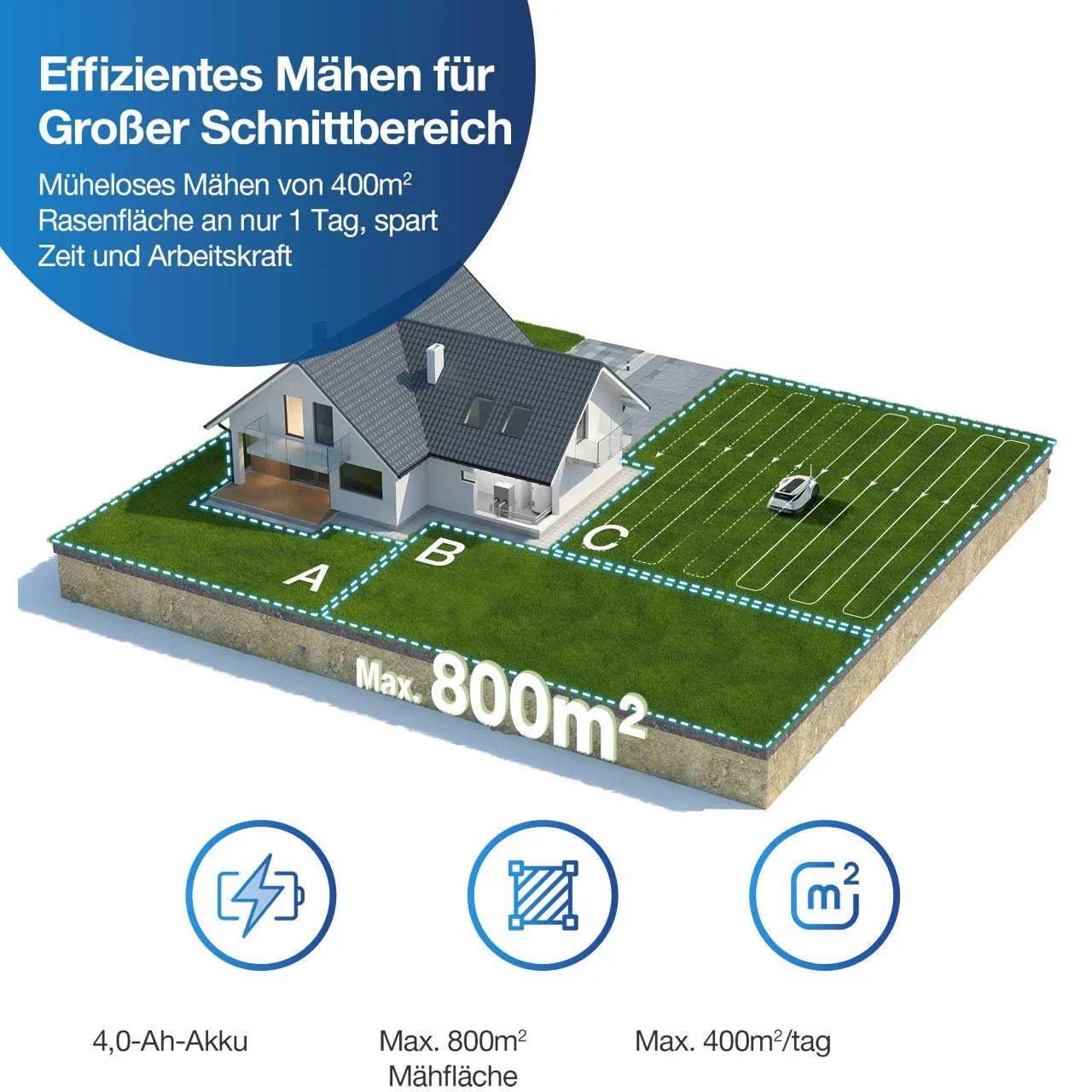 - Mähroboter ohne Draht schafft 400 m² pro Tag
