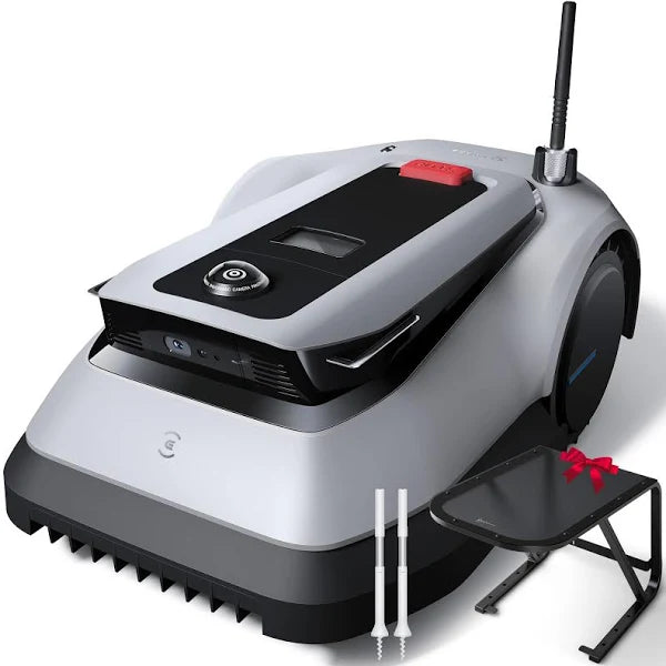 Mit dem Ecovacs Goat G1-800 mähst du mühelos Rasenflächen von bis zu 800 Quadratmetern. Der Mähroboter arbeitet ohne Begrenzungskabel, darum kannst du ohne mühsame Installation direkt mit dem Mähen loslegen. Du steuerst den Mähroboter einfach über die App auf deinem Smartphone oder Tablet. So schaltest du ihn aus der Ferne an, während du die Zeit für andere Dinge nutzt. Dank der speziellen Sensoren und der integrierten Kamera weicht der Mähroboter Hindernissen wie Spielzeugen, Leitungen oder Haustieren aus. Der Mähroboter mäht selbst hügelige Gärten mit bis zu 45 % Steigung ohne Probleme. Außerdem stoppt er dank des Regensensors automatisch mit dem Mähen, wenn es regnet. Ist der Akku leer? Dann kehrt der Goat G1-800 automatisch zurück zu seiner Ladestation und mäht weiter, sobald er wieder aufgeladen ist.